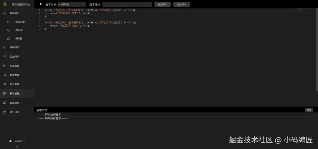 3、控制脚本: 基于监控点数据设置各类控制逻辑、计划任务