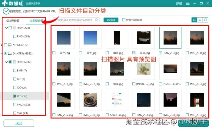 扫描出来的文件也能预览大部分的基本信息 (文件类型、原文件名、文件最后修改时间、创建时间、大小等) ,如果扫描的文件为图片格式,我们还可以查看图片的预览图。
