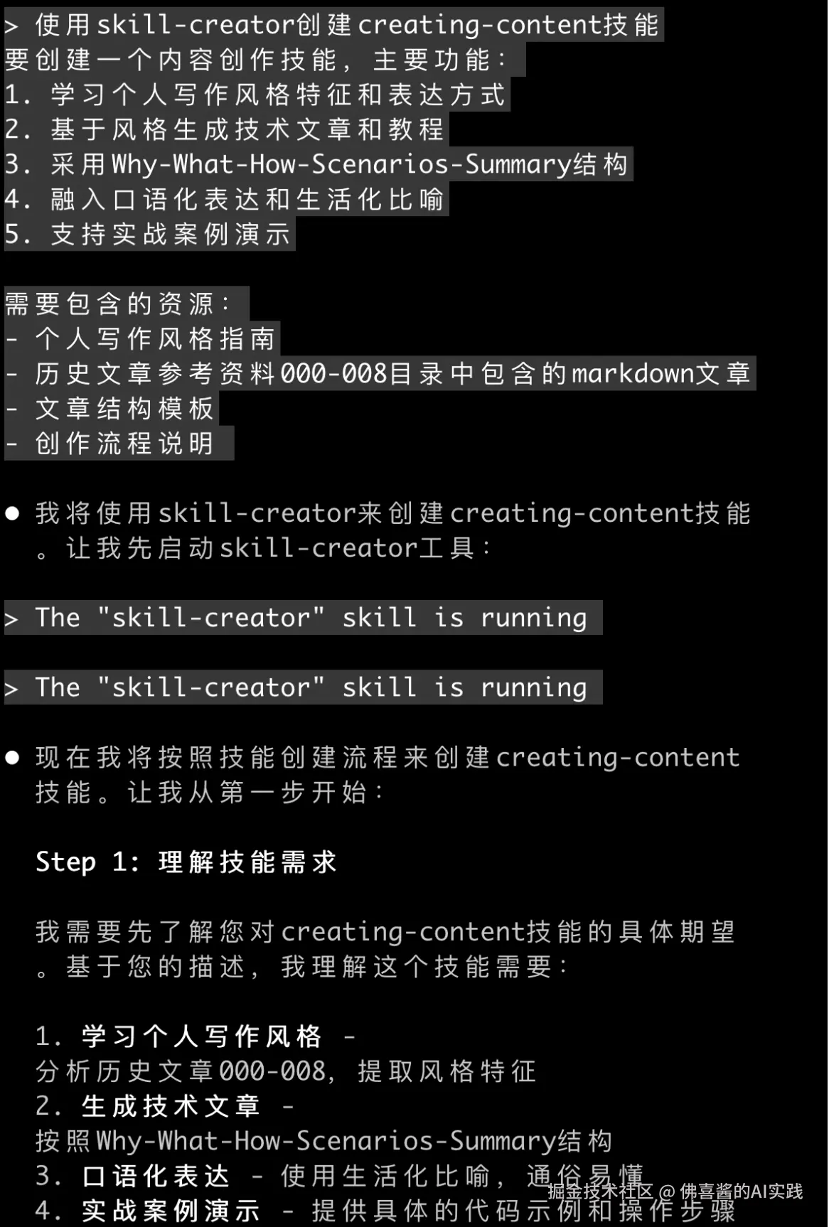 看看,Claude Code现在就自动使用我们刚创建的技能来生成这篇文章了!这种体验真的很哇塞!