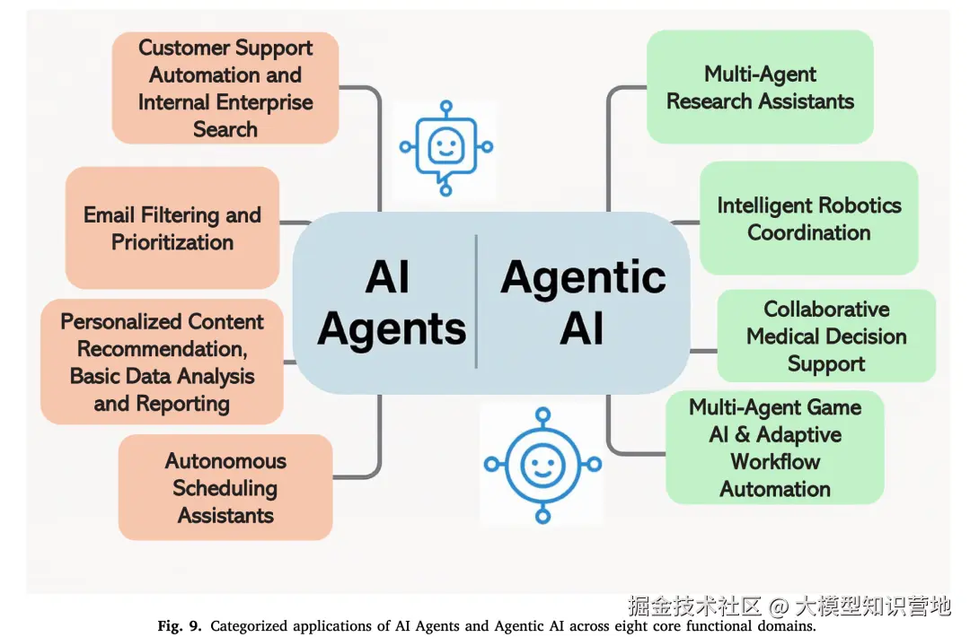 本文区分了 AI Agent 和 Agentic AI。前者是实现特定任务自动化的工具,而后者则为解决需要分布式智能和协作的复杂问题提供了新的系统范式。
