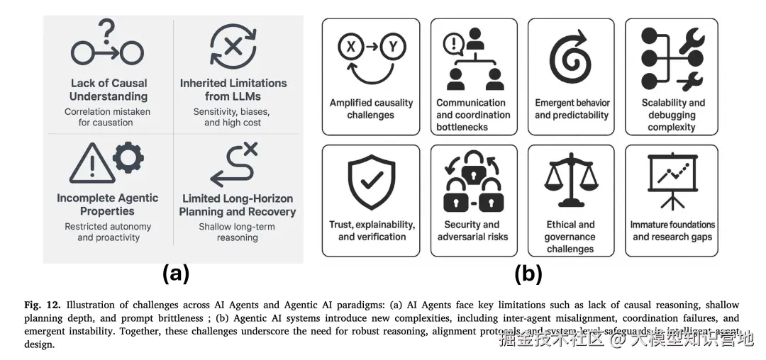 | 面临挑战 | AI Agent | Agentic AI | 提出的解决方案 |
