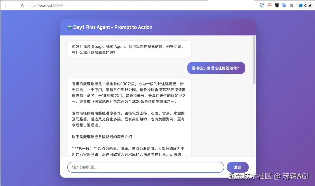 (1)学会创建第一个 Agent,配备 Google Search 工具,核心是让你学会 Agent 如何从用户提示 → 工具调用 → 返回结果。