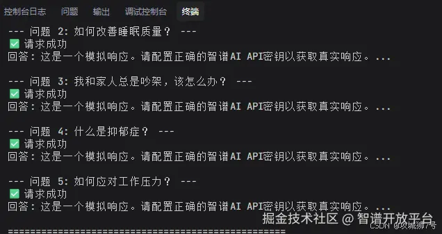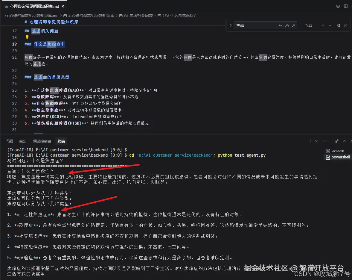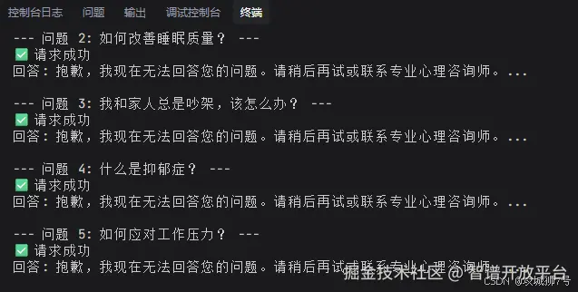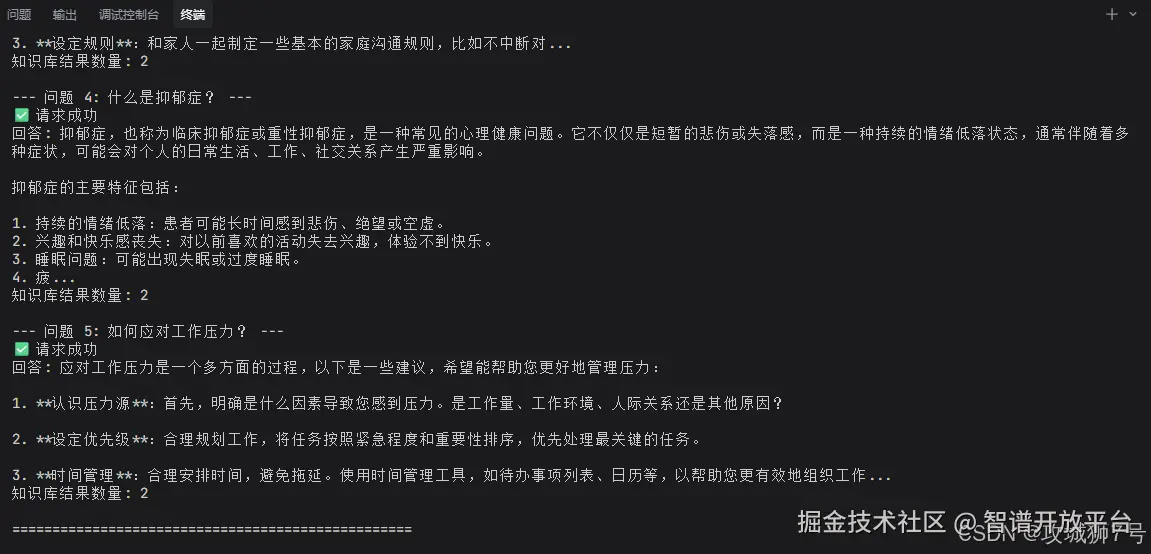 修改后,测试接口果然能正确返回和知识库差不多的心理咨询答案:
