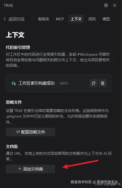 这个后端要用到智谱AI开放平台的智能体API和知识库API,这里刚好可以使用TRAE的上下文功能设置,如下: