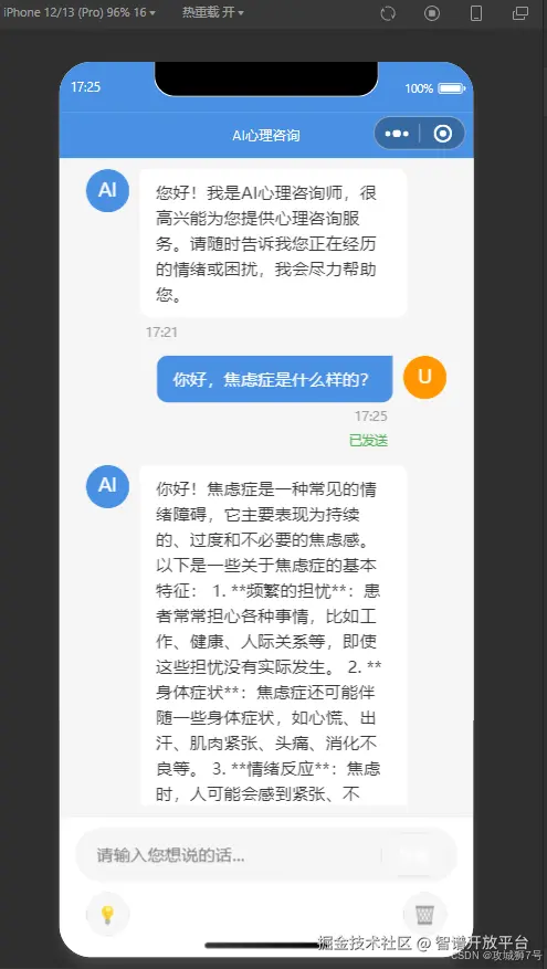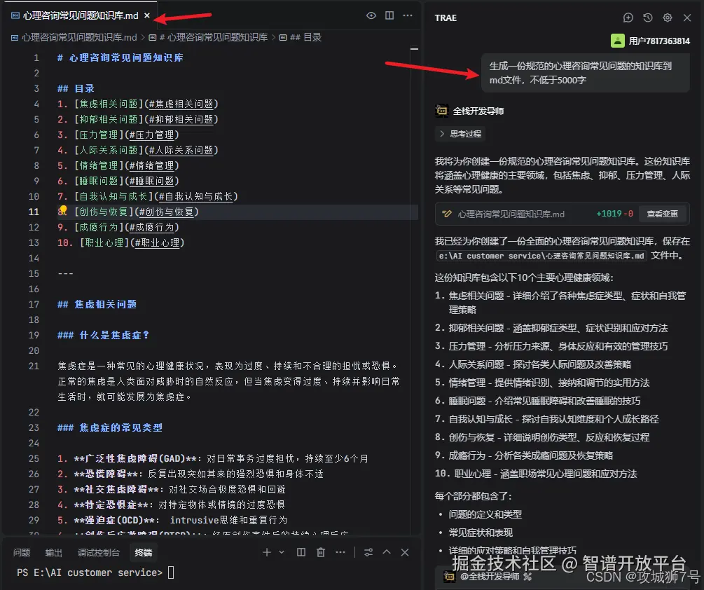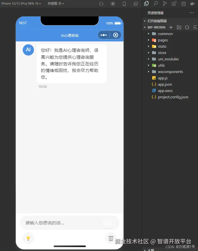 在完全没有前后端基础的情况下,如何借助现代化的AI辅助开发环境(国内版TRAE)和先进的AI编程大模型(以GLM-4.6为例),从零开始,为一个心理咨询公司开发并部署了一款功能完善、支持跨平台(微信、抖音)的智能客服小程序的完整历程。文章将详细拆解从需求分析、技术选型、后端搭建、前端开发到最终闭环的每一步,并分享在此过程中如何高效利用AI解决实际编程问题,希望能为同样想踏入编程世界但又心怀忐忑的朋友们提供一份真实可行的实践指南。(文末提供完整项目代码)
