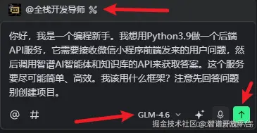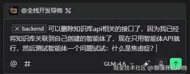 接着我开始对GLM-4.6模型的开发导师智能体提问: