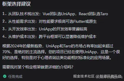 不一会它会对比各自技术框架给出以下总结建议给你选择: