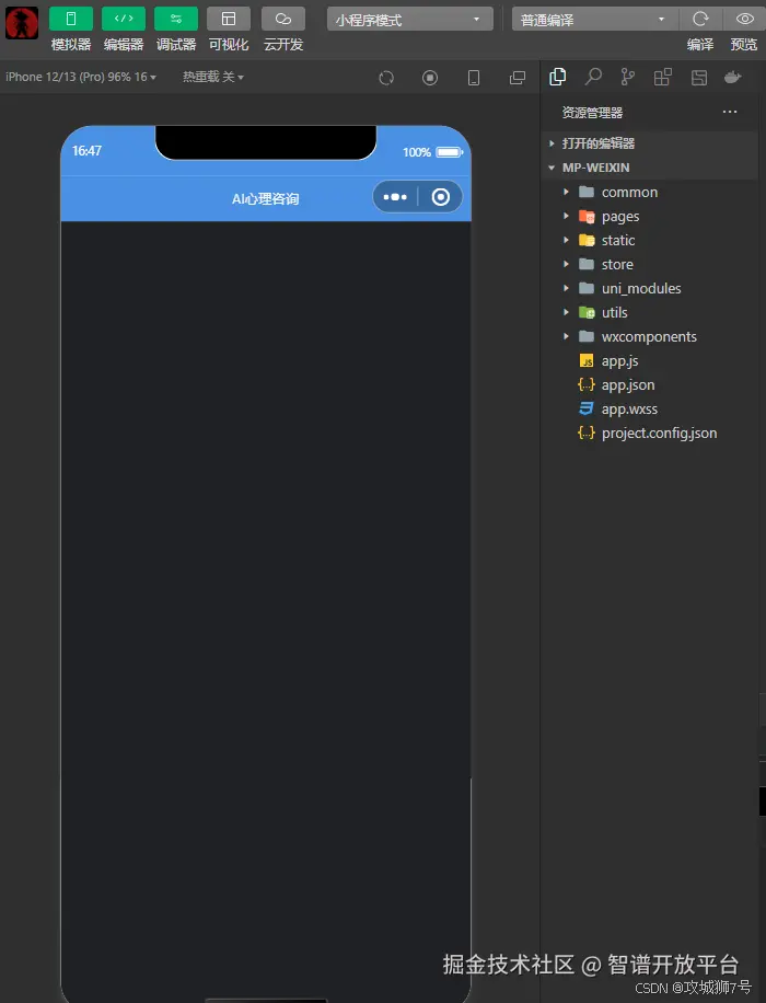 接着我的智能体导师结合GLM-4.6模型快速根据项目模板从零创造了一个AIfrontend前端小程序项目: