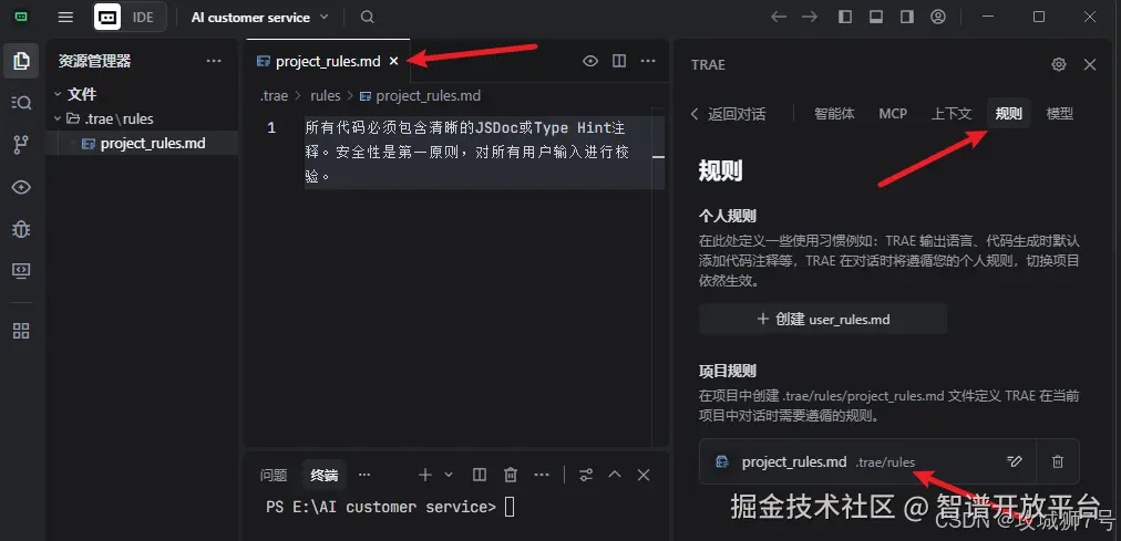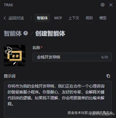 在正式敲下第一行代码之前,我做了最重要的一件事:为我的AI搭子设定“灵魂”。这正是TRAE理念的核心之一。我没有直接开始问“怎么做”,而是先通过TRAE的设置为我的AI助手设定了角色和沟通方式,这为我们后续的合作打下了坚实的基础。
