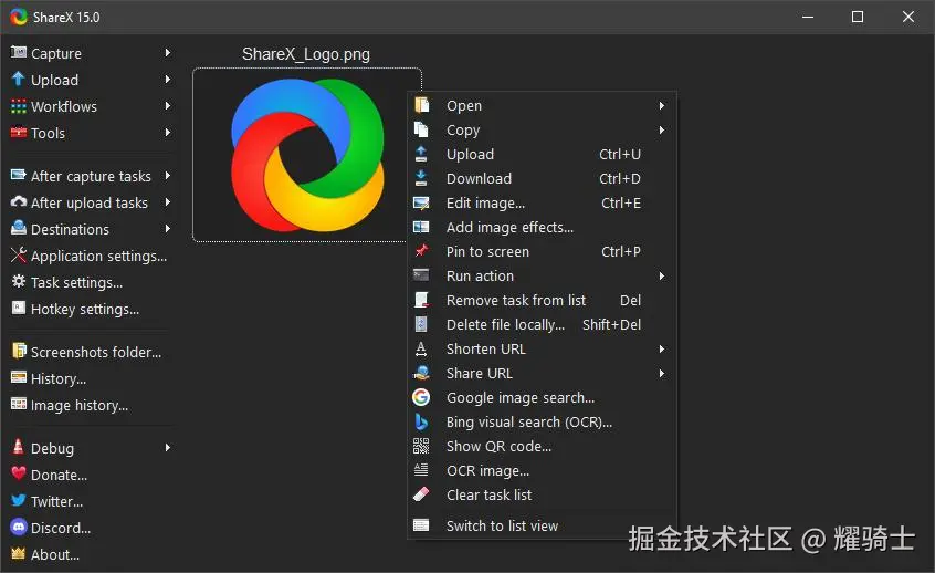 ShareX是一款功能强大的开源屏幕捕捉工具,支持全屏、区域、窗口等多种截图方式,并能录制GIF和视频。它还内置了丰富的后续操作,如即时上传、图像编辑和OCR文字识别,极大地提升了从截取到分享的工作流效率。