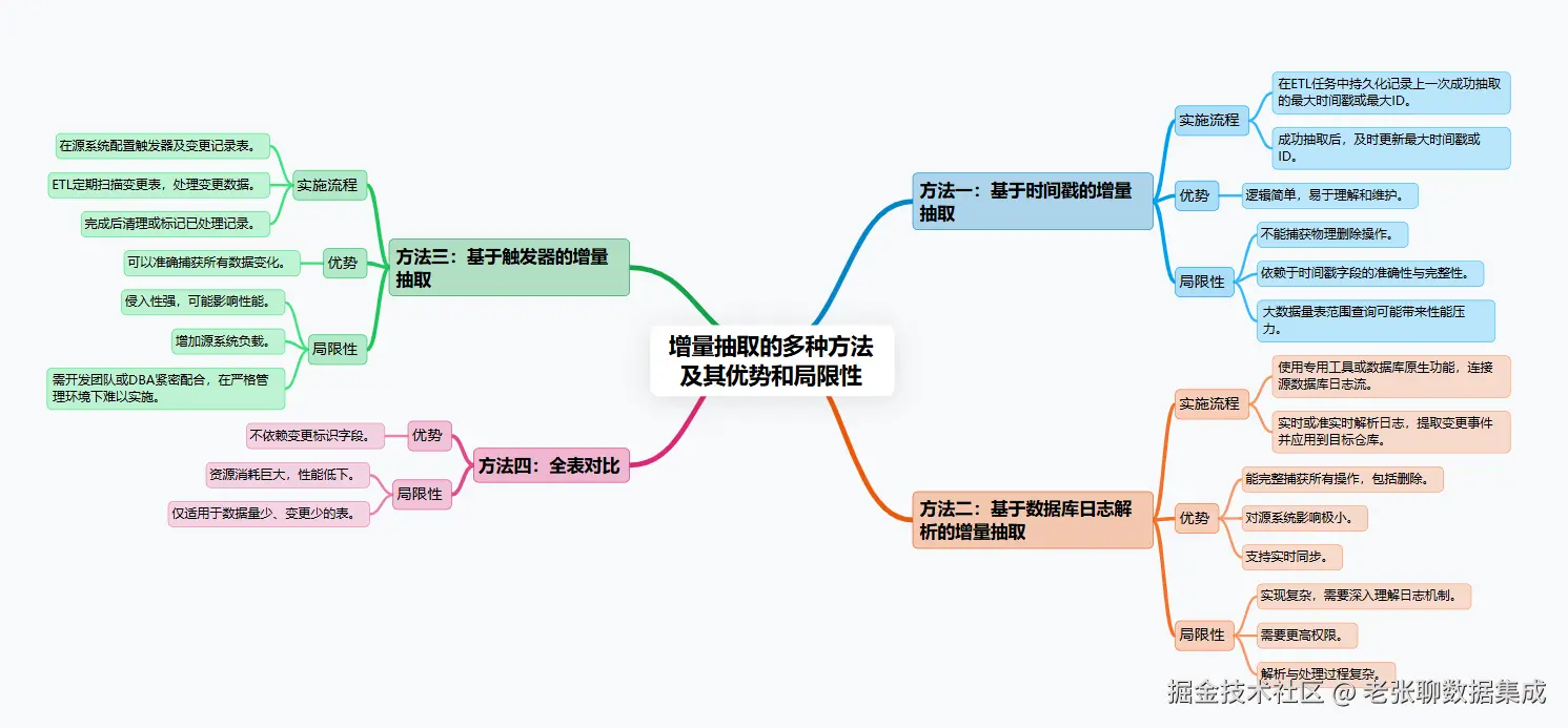 接下来,我们就来探讨几种主流的增量抽取方法。我一直强调,没有一种方法可以称为“最佳”,关键在于选择最适合你当前数据源特性和约束条件的方案。