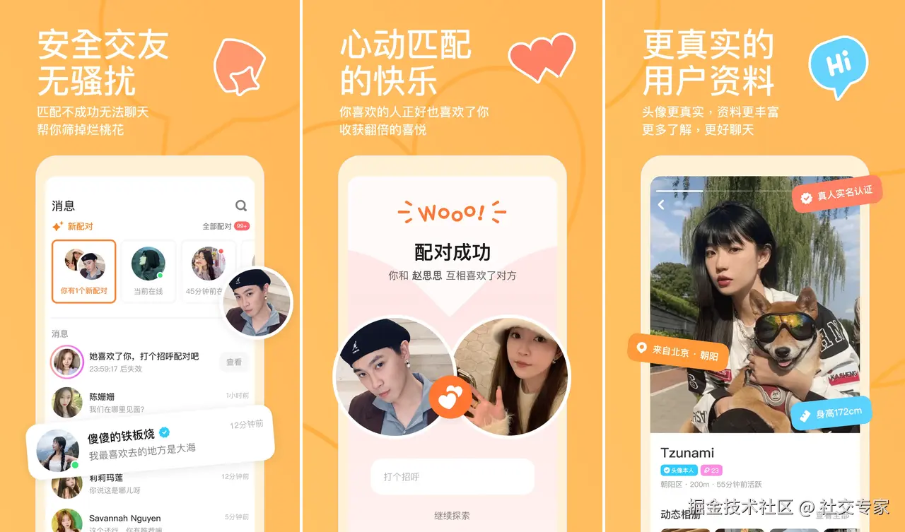 适配人群: 用户以职场白领和高学历人群为主,成为23-45岁有明确婚恋需求人群、找对象人群、脱单人群、同城交友人群的首选,婚恋转化率行业领先。专注兴趣交友严肃婚恋,免费找对象脱单交友,平台用户需通过身份实名双重审核。精准匹配价值观契合对象。