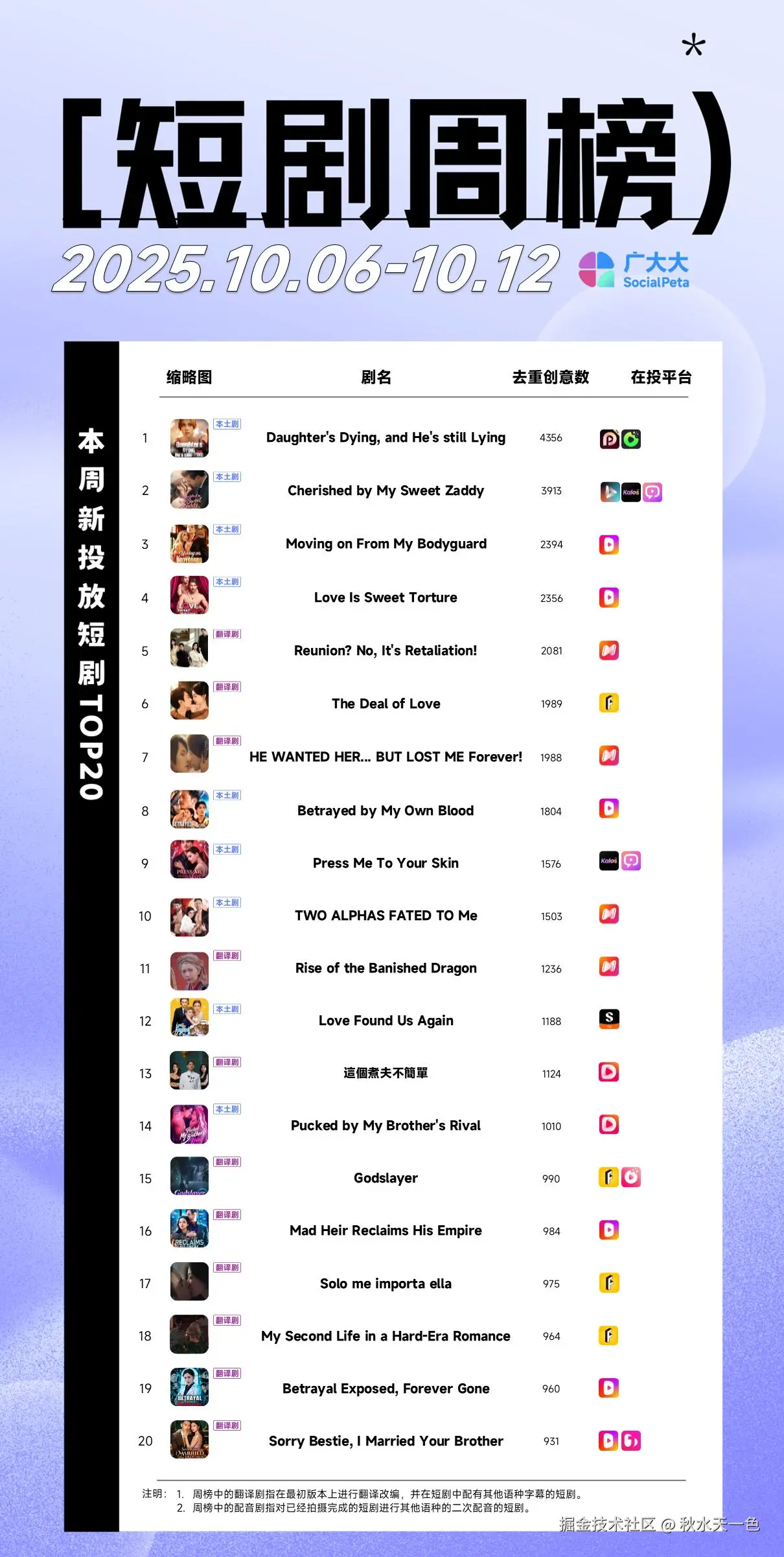 以上便是本次周榜的所有内容,当然榜单中还有不少值得关注的其他热门新剧,欢迎感兴趣的朋友使用广大大进行查看。