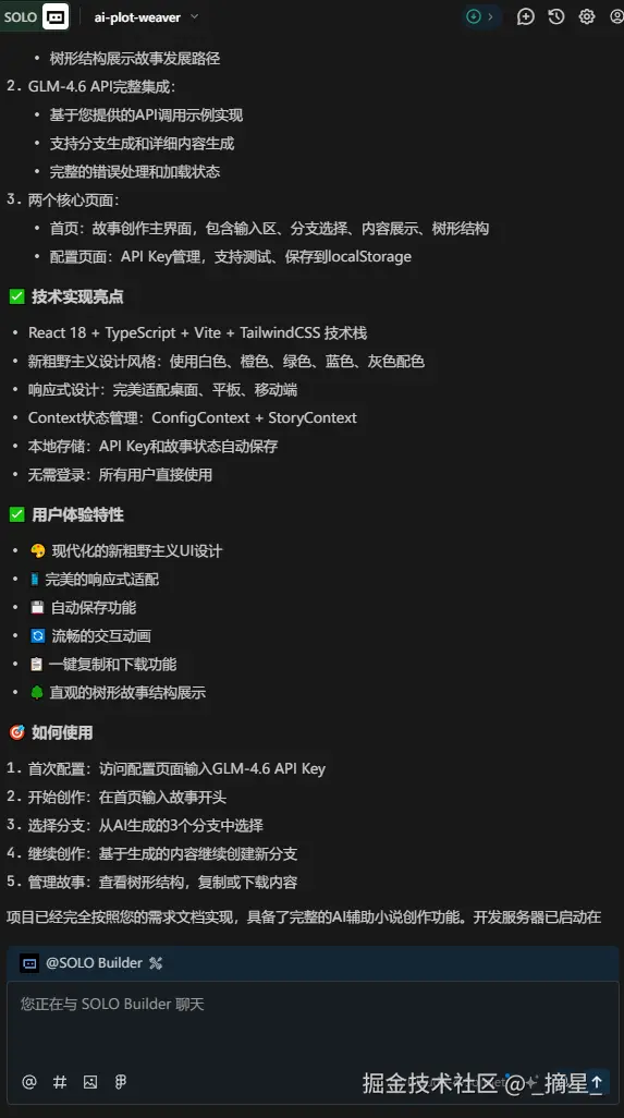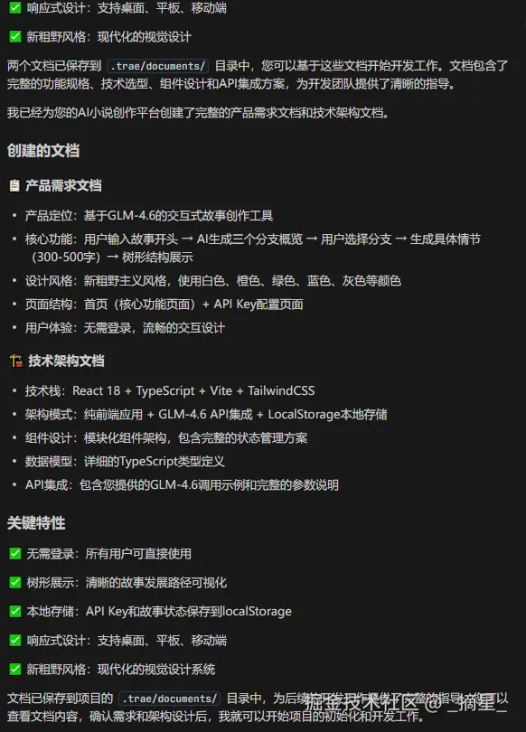 用户选剧情,AI写故事:Trae Solo+GLM-4.6实现沉浸式小说创作体验