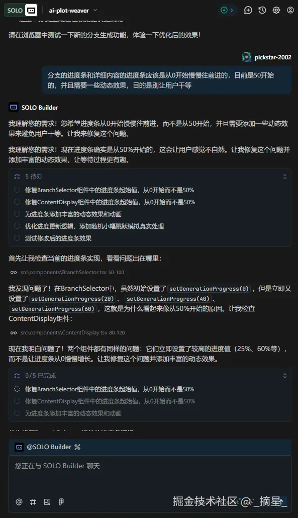 并且Solo在修改的过程中还会进行自测,确保我们想要的功能给到我们的时候是准备无误的。