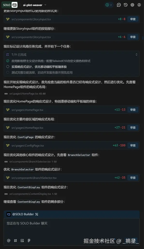 那么Solo在接收到修改需求之后,还是严格按照先定义任务列表,将大任务拆解成小任务一项一项的去完成任务这个理念: