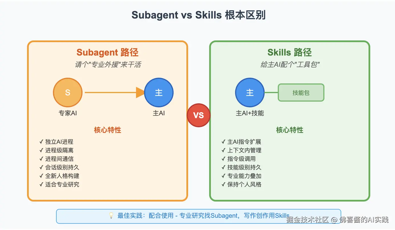 Skills vs Subagent:到底有啥不一样?