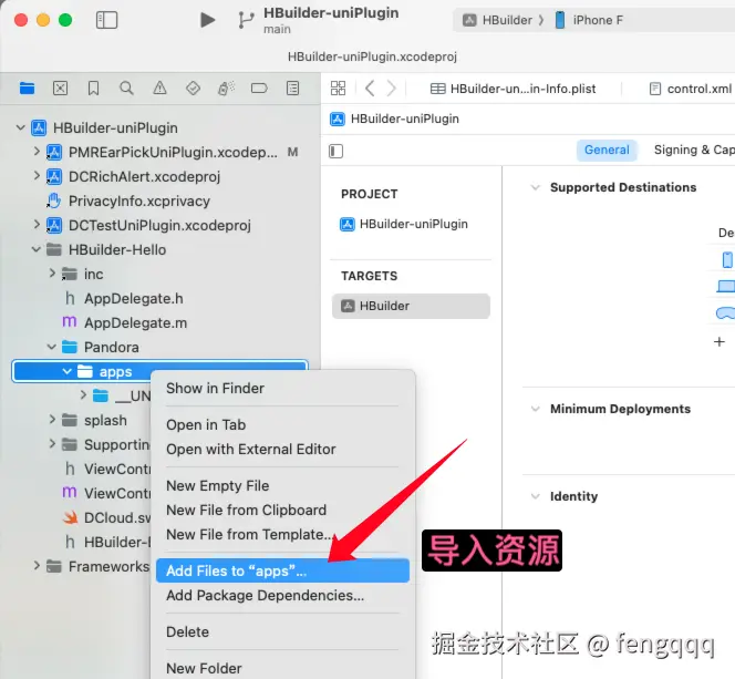 打开HBuilder-Hello.xcodeproj 工程,导入离线资源