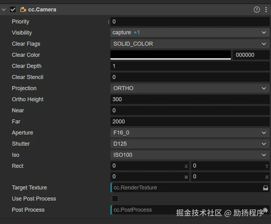 - 将相机组件的Target Texture属性留空(代码中动态设置)