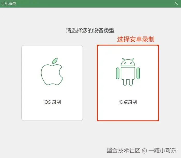 步骤1:下载并打开该软件,在页面的左上角选择 “手机录制” 模式,然后选择 “安卓录制” 。