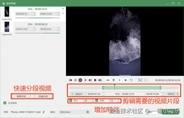 步骤3:录制完毕后,可以在视频预览页进入 “高级剪辑” 页面,在这一步你可以按照个人需求对视频进行如快速分段、增加特效等编辑操作。