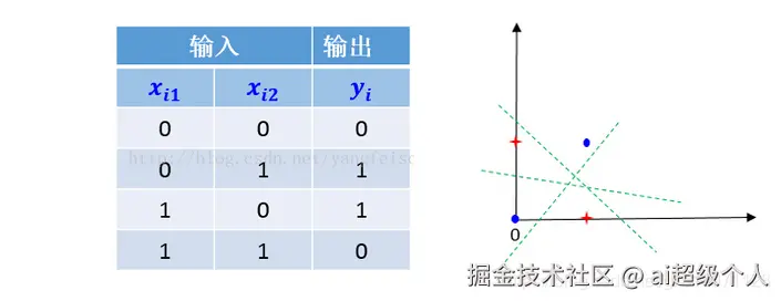 也就是输入是一样的情况,例如都是 0 或者都是 1 ,得到的结果是 0,否则得到的结果是 1。