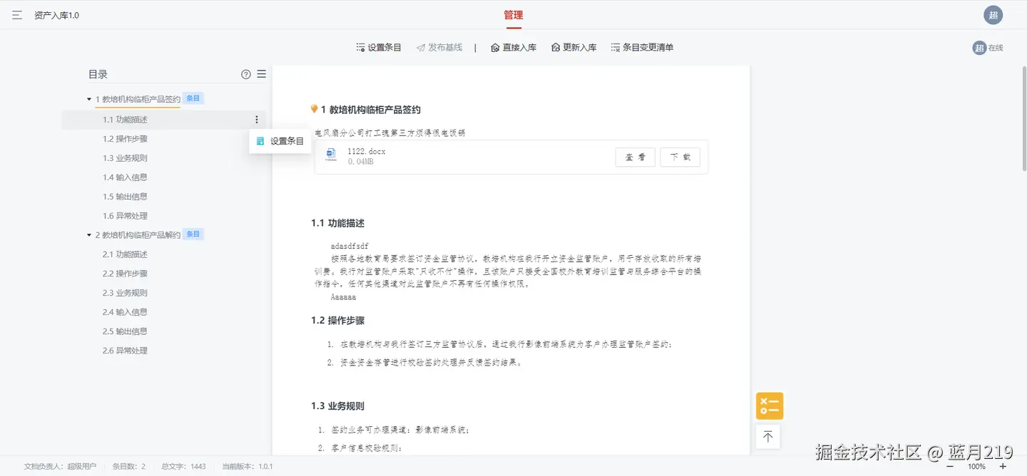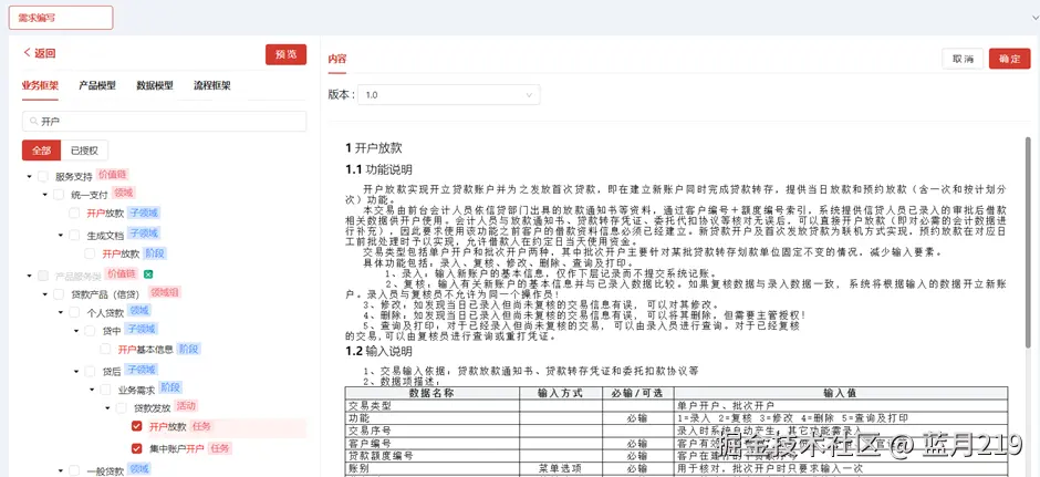 🔍 设置结构化条目:按照功能单元将需求拆解为标准化条目,每个条目包含明确的功能描述、业务规则、关联系统等信息,实现从 “管文档” 到 “管内容” 的转变,为后续复用奠定基础。
