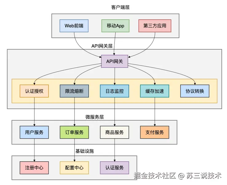 让我们通过架构图来理解网关在微服务架构中的关键作用: