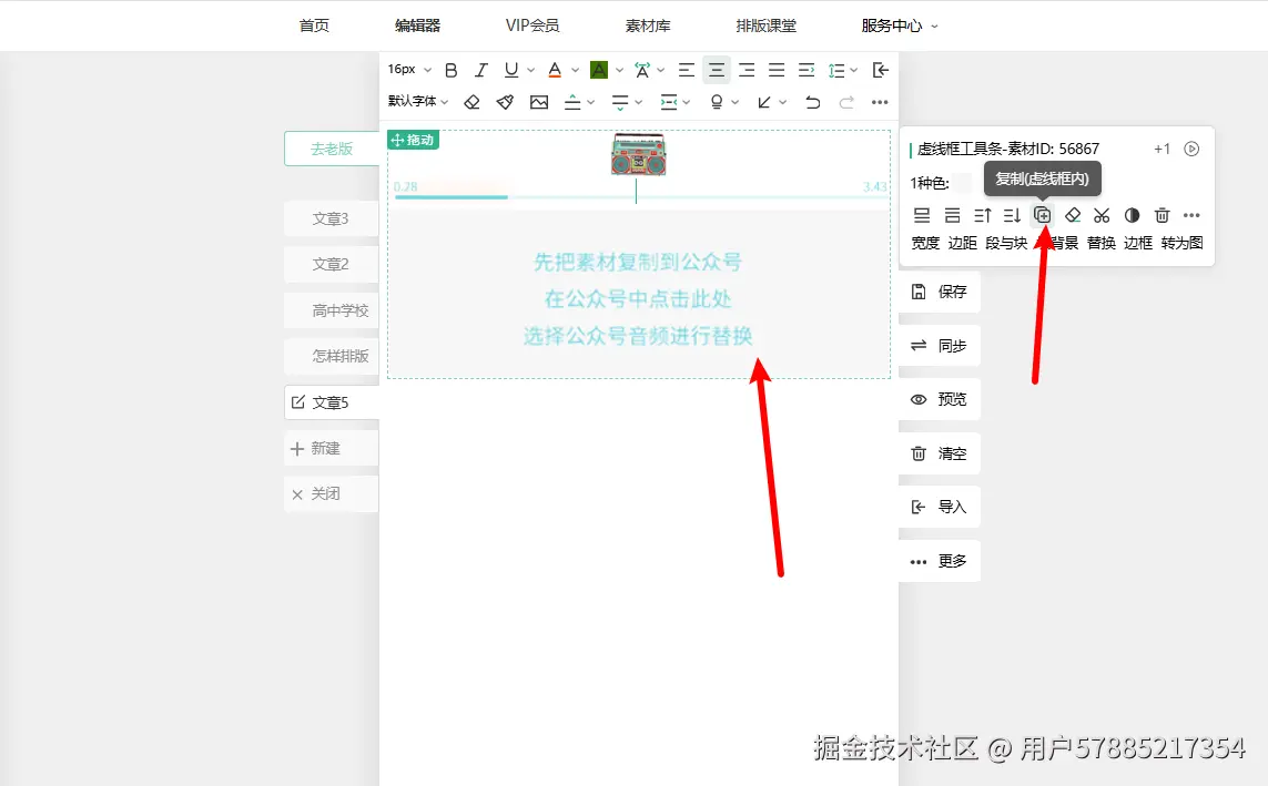 - 选中这个音频样式,点「复制」,然后打开微信公众平台的图文消息,按Ctrl+V粘贴进去;