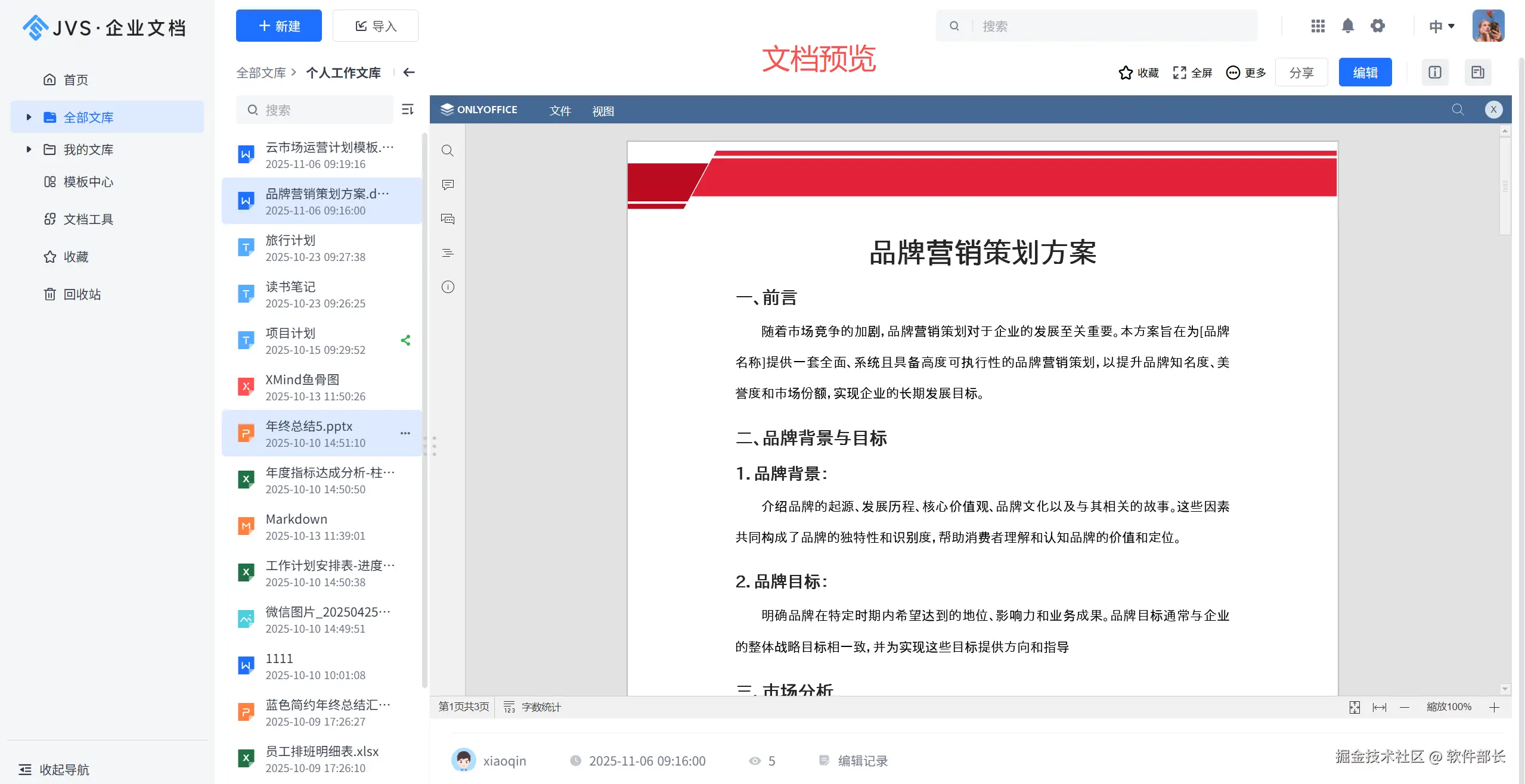 - 特点:无忧企业文档主要针对企业用户提供在线文档、协同编辑、知识管理的基础化办公工具。它采用B/S构架,专注私有化部署,主要解决企业内部信息孤岛问题。功能覆盖在线文档的协作编辑、知识管理、全文检索、OCR识别、权限管理等需求场景。