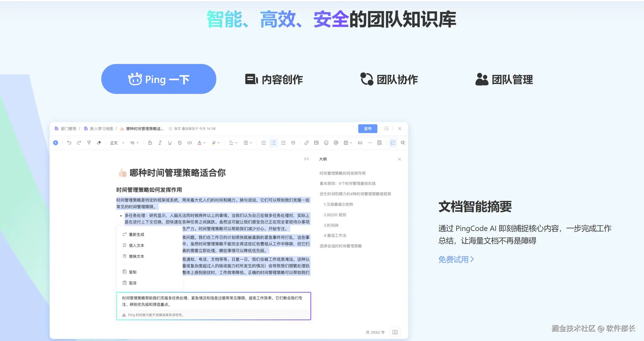 - 特点:PingCode知识文档管理方案是一款在国内获得较多认可的企业级知识库工具,聚焦知识全生命周期管理。它通过结构化沉淀与协作机制,帮助团队将分散文档转化为可持续复用的知识资产。产品整体成熟、易上手,用户反馈积极。
