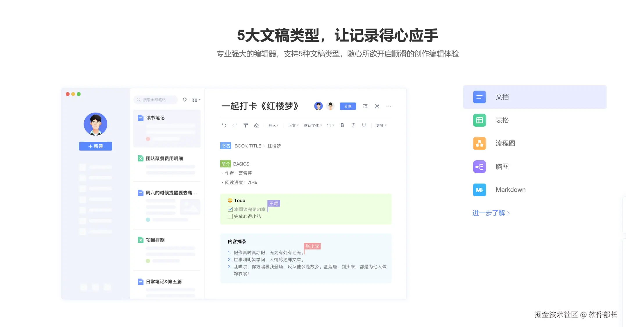 - 优势:专注于“文档协作”,为团队提供了一个高效的内容创作与沟通平台,特别适合追求轻量化、高效率办公的现代团队。