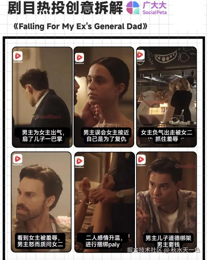 让我们通过这段16分钟的素材,感受这场炸裂的“跨年恋”:一开始,女主受邀参加男主宴会,竟在现场遭到前夫当众羞辱。关键时刻男主挺身救场——而他竟然是她前夫的爸爸,这设定简直炸裂;中间剧情再掀波澜,男女主解除误会之后,玩起了捆绑play,女主更是带上choker与男主调情,两人暧昧拉扯,荷尔蒙直接拉满;结尾处,男主儿子突然登场向父亲要钱,也为这段关系的未来埋下悬念。