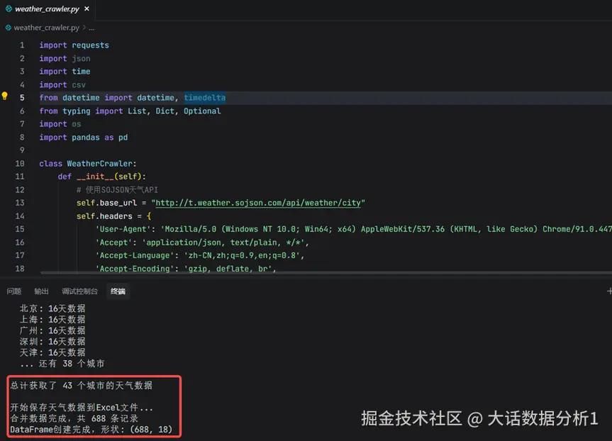一共抓取了43座城市的天气数据,从哈尔滨到三亚,数据全抓下来了,能够解决业务的一些需求,保障业务的正常进行,下面复盘一下,如何使用Python+飞书多维表实现自动化取数。