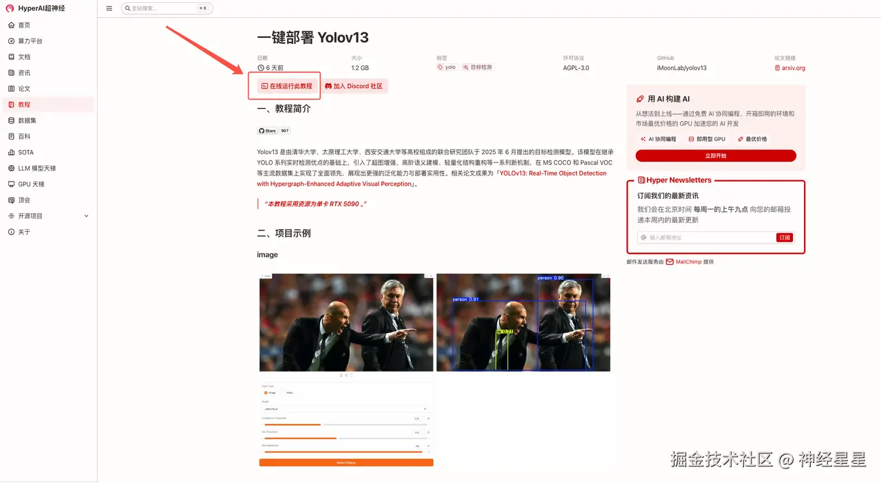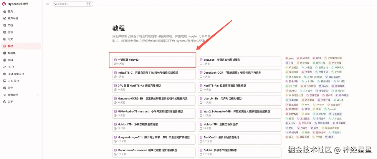 目前,「一键部署 Yolov13」已上线至 HyperAI超神经官网的「教程」板块,点击下方链接即可体验一键部署教程 ⬇️