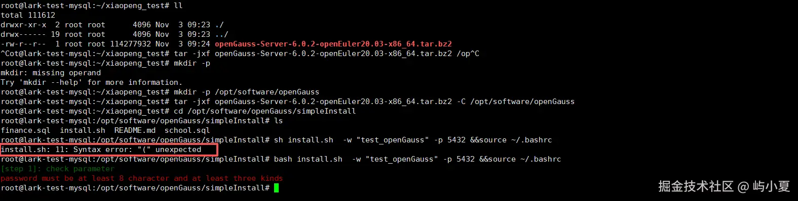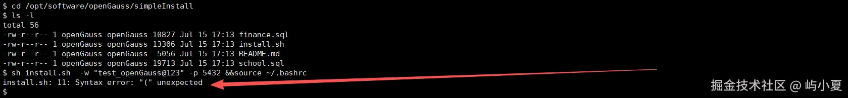 注意:此处执行报错:install.sh: 11: Syntax error: "(" unexpected