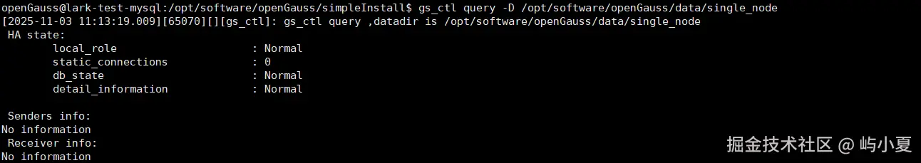gs_ctl query -D /opt/software/openGauss/data/single_node
