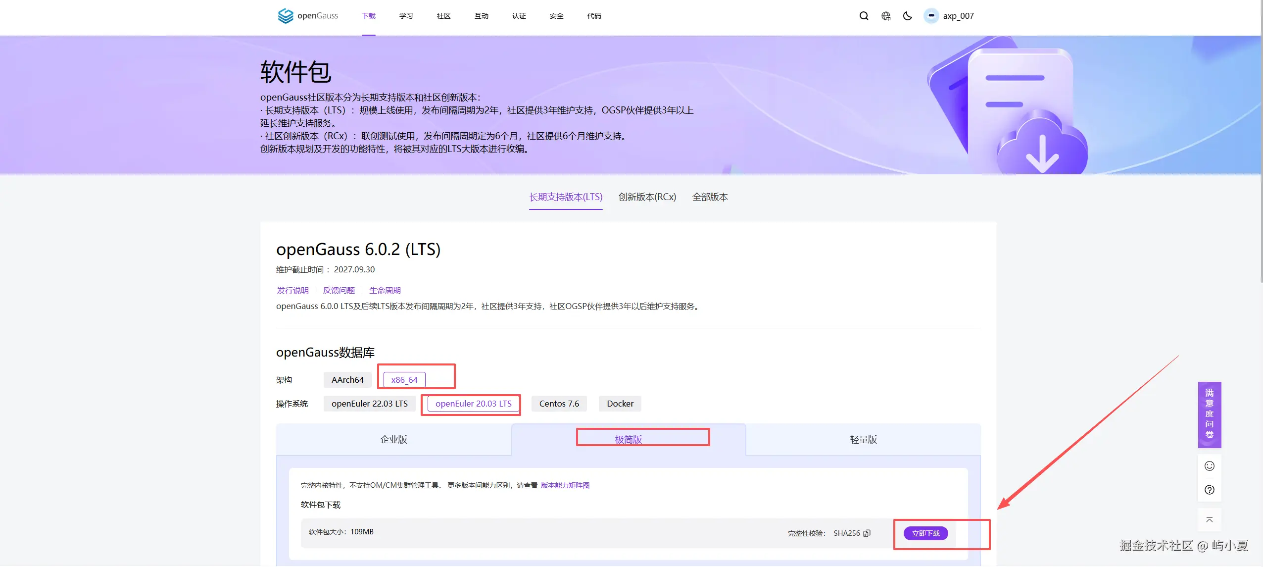 选择x86服务器版本,选择极简版下载
