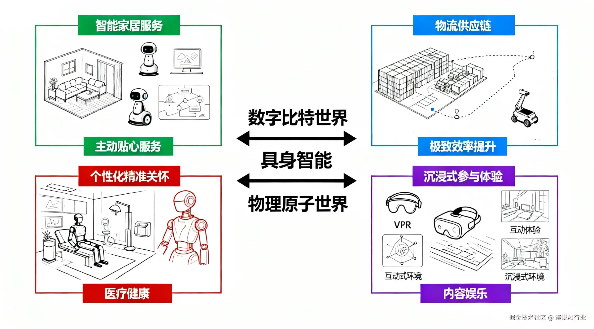 - 彻底打破虚拟与物理的边界: 具身智能技术使得虚拟世界中的对象和行为具有了“实体感”和“可操作性”,让数字内容变得“触手可及”。