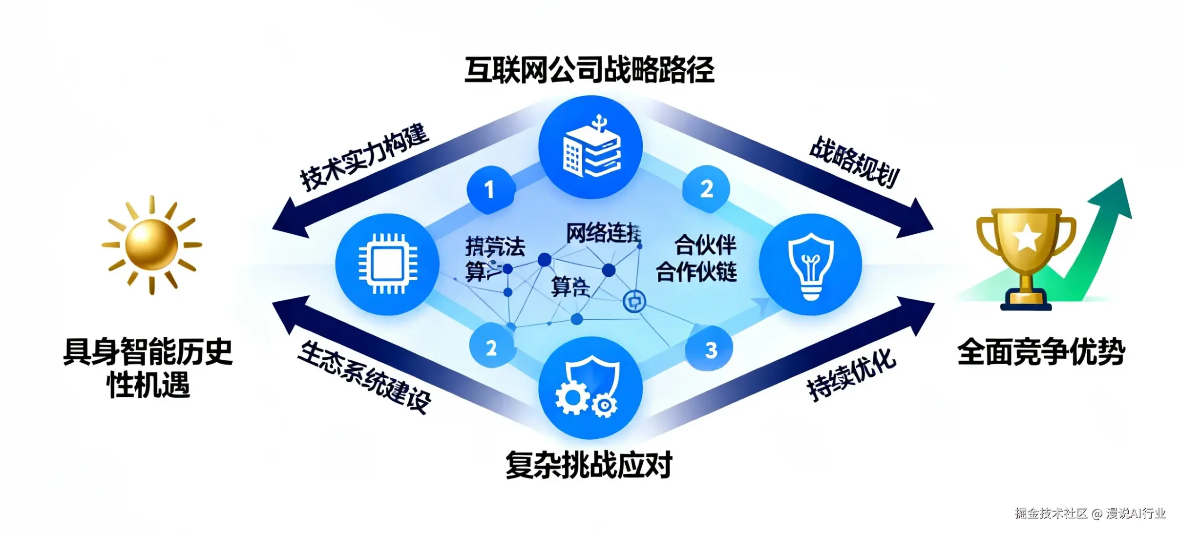面对具身智能所蕴含的历史性机遇,互联网公司需要制定清晰而系统的战略路径。这场竞争不仅是技术实力的较量,更是生态构建能力与应对复杂挑战智慧的全面考验。