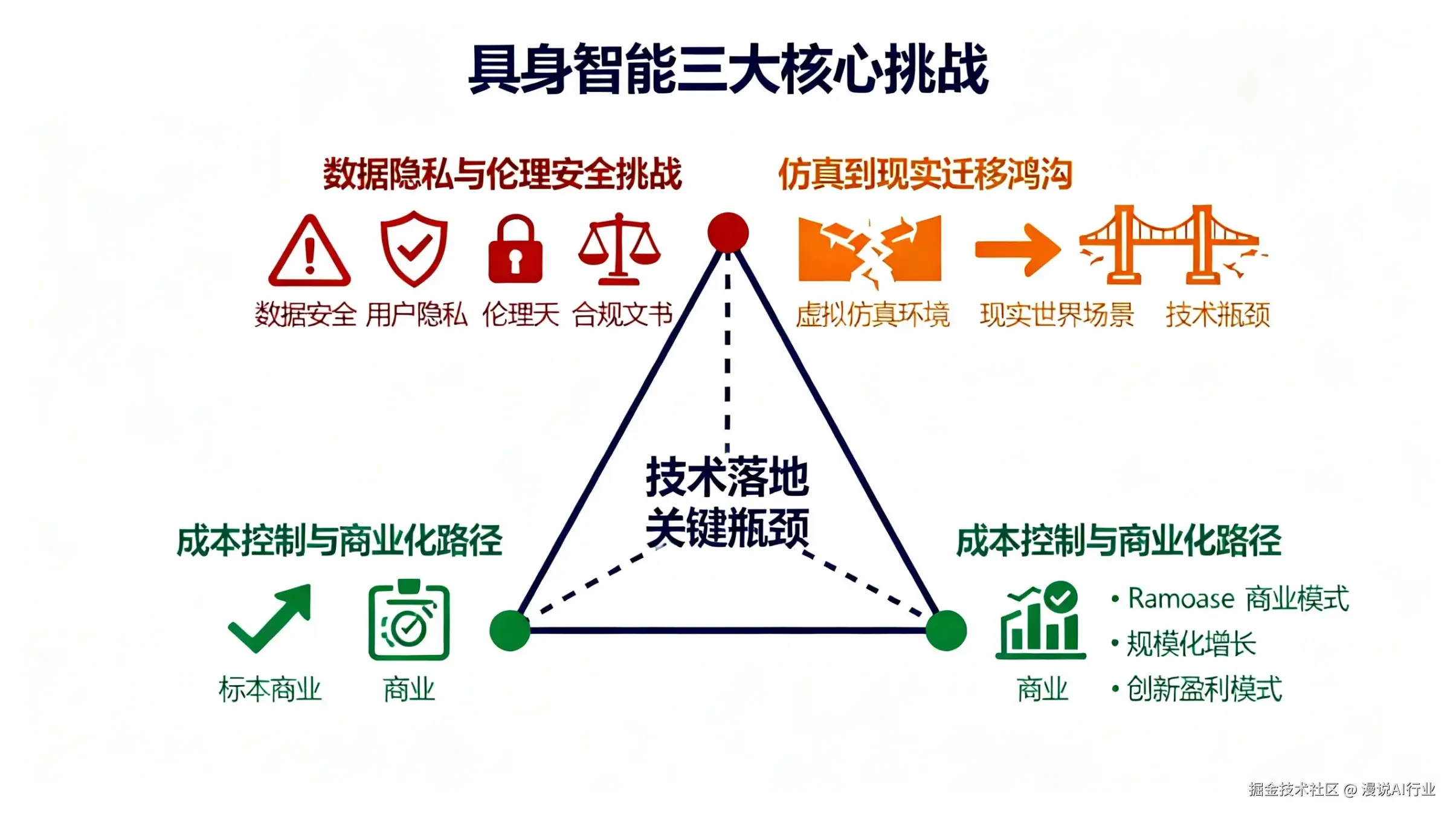 - 数据隐私与伦理安全的严峻挑战: 具身智能体在服务过程中会持续产生大量涉及用户生活环境、行为习惯甚至生理特征的敏感数据。如何在合法合规的前提下,妥善解决数据安全、用户隐私保护与模型训练所需数据之间的平衡,是必须直面和解决的重大伦理与合规问题。
