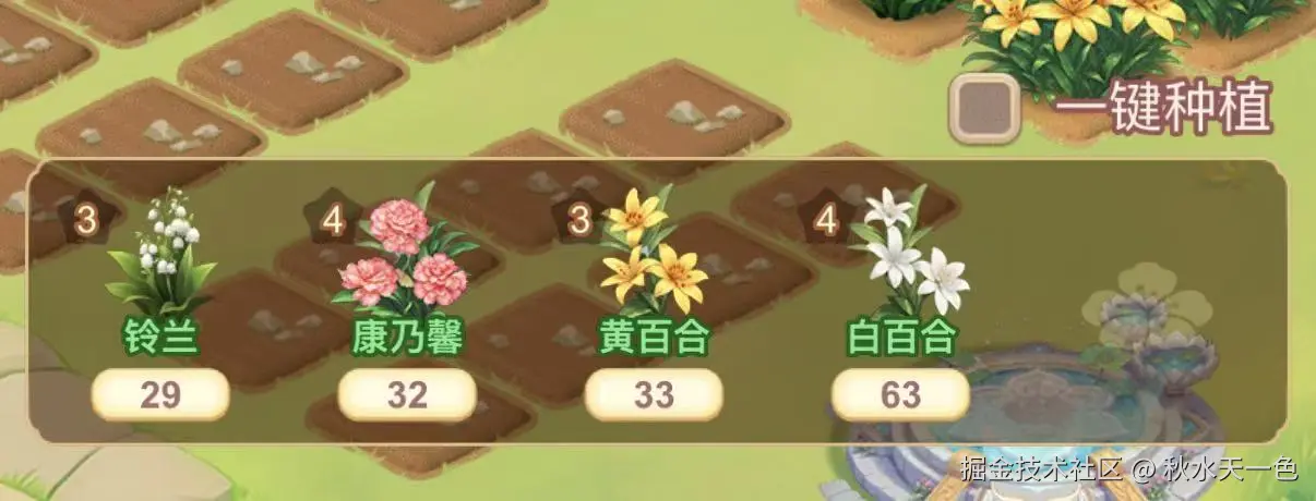 【我的花园世界】是一款玩法非常经典的古风花店经营游戏,撇开AI质感明显的仿唐画风包装和当下最流行的弃妇经商大女主故事,主玩法和【QQ农场】【开心农场】没有太大区别,玩家不断地种花、浇水施肥、收获、插花、售卖、育种,并随着等级提升逐步解锁新花、新花瓶、新花艺、新装修、新剧情。直接对标的竞品有【秘密花园HD】【花札物语】。