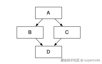 工作流描述了任务与任务之间的依赖关系,比如我现在有 A、B、C、D 四个任务,我希望 A 任务运行完毕后才开始运行 B、C 任务,最后再运行 D 任务。这就形成了一个依赖关系,可以通过有向无环图(DAG)来描述这个关系,如下图所示。