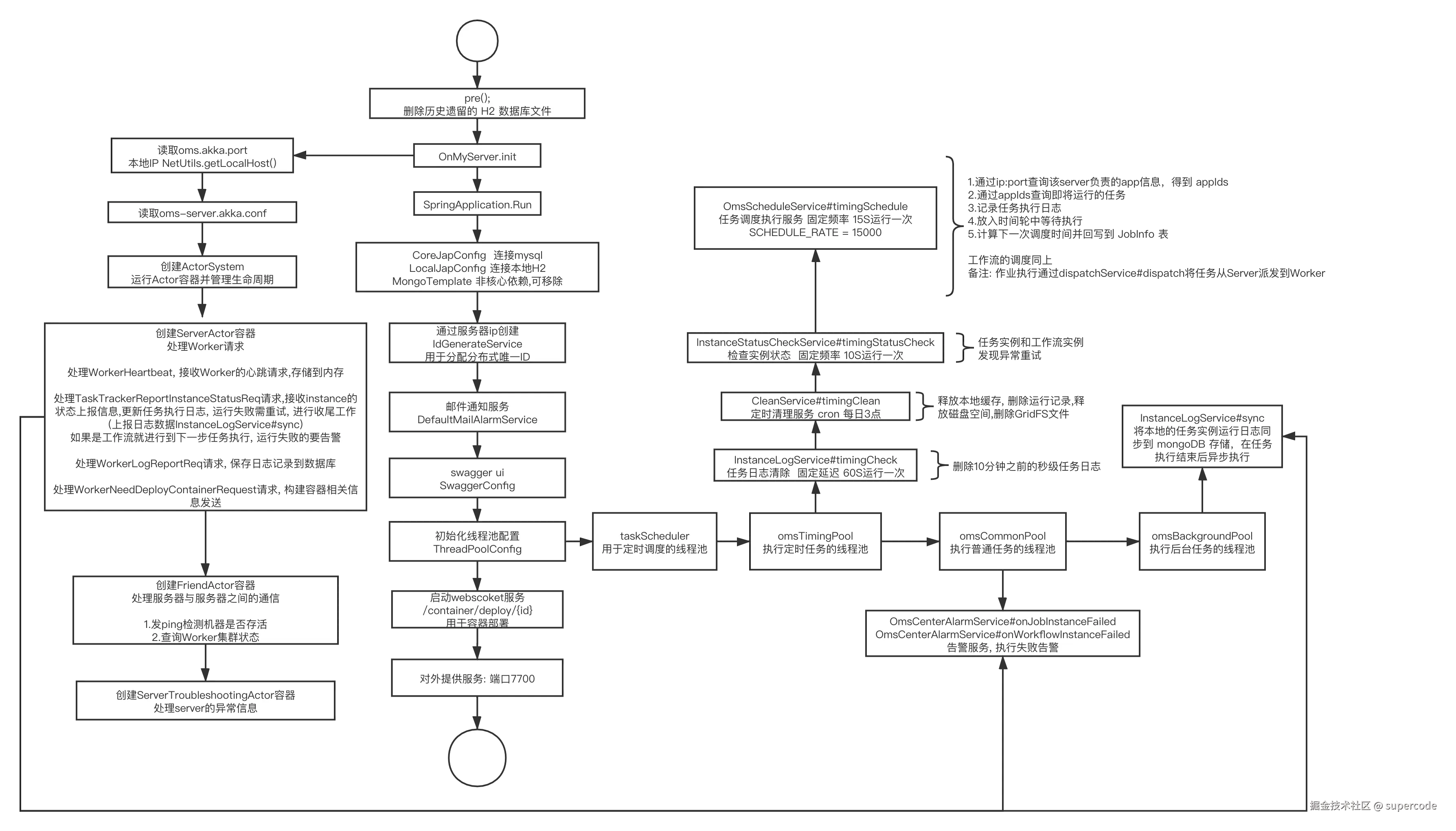 【PowerJob语雀转载】 架构与原理 supercode 2025-11-19 39 阅读1分钟 原理剖析系列文章 点击查看 架构图(模块视图) Server 启动流程分析 server 功能全景图,感谢 群友@大海 的贡献 Worker 启动流程分析 worker 功能全景图,感谢 群友@大海 的贡献 MapReduce 原理 #