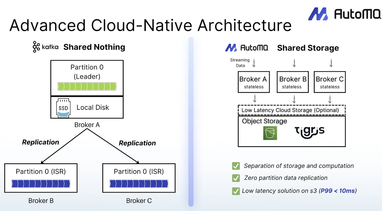 为了应对这些挑战,AutoMQ 100% 兼容 Kafka 的流处理引擎,现已与 Tigris 全球分布式、兼容 S3 的对象存储深度集成,共同构建了新一代高效、可扩展且极具成本效益的“无盘 Kafka” 平台。