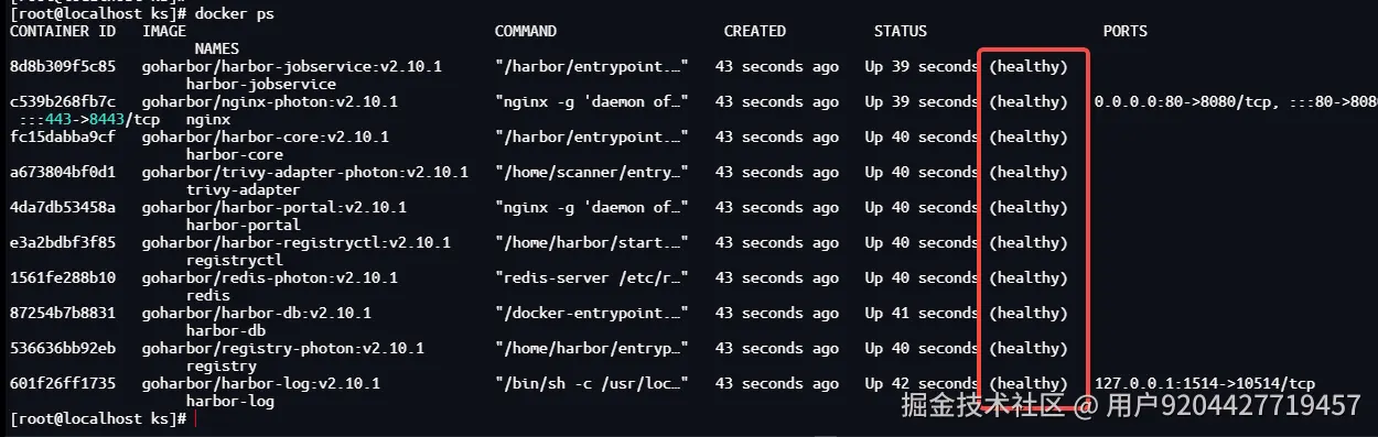 安装完成后,等待容器全部启动完成(大概1分钟),通过执行docker ps 查看状态