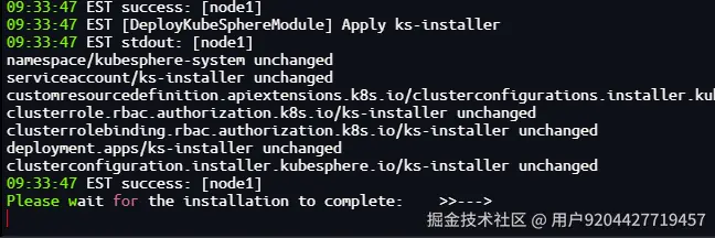 kubectl logs -n kubesphere-system $(kubectl get pod -n kubesphere-system -l 'app in (ks-install, ks-installer)' -o jsonpath='{.items[0].metadata.name}') -f