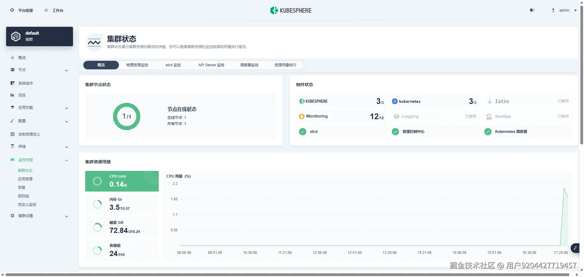 配置文件默认只安装了监控,如果需要安装其他组件,可以自行在自定义资源中开启