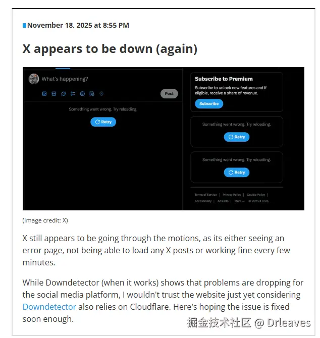 这段时间内,许多网站出现间歇性“打不开—恢复—再挂”的情况,正是由于系统不断收到“坏配置文件”导致反复崩溃。