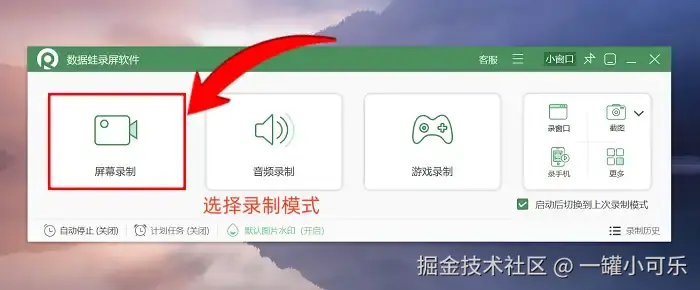 步骤1:电脑怎么录制屏幕?先去官网下载对应系统的版本 (Windows/Mac都支持) ,安装后双击图标启动。主界面直接选录制模式,我们日常用得最多的就是 “屏幕录制” 。